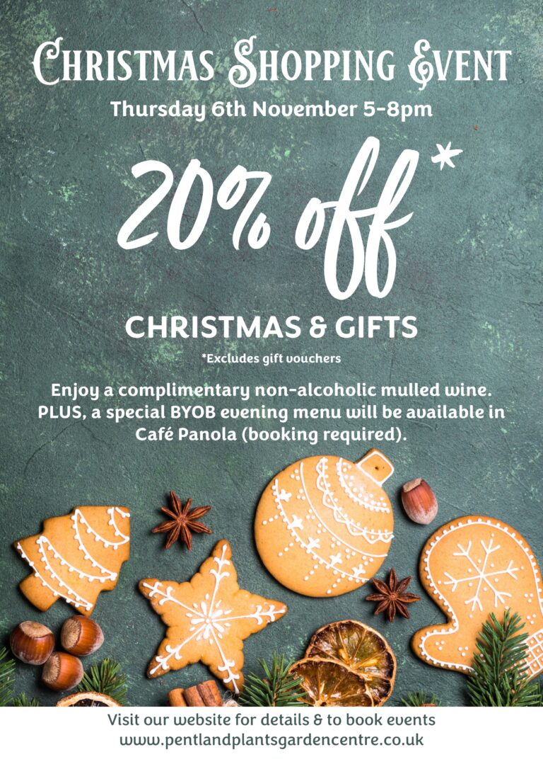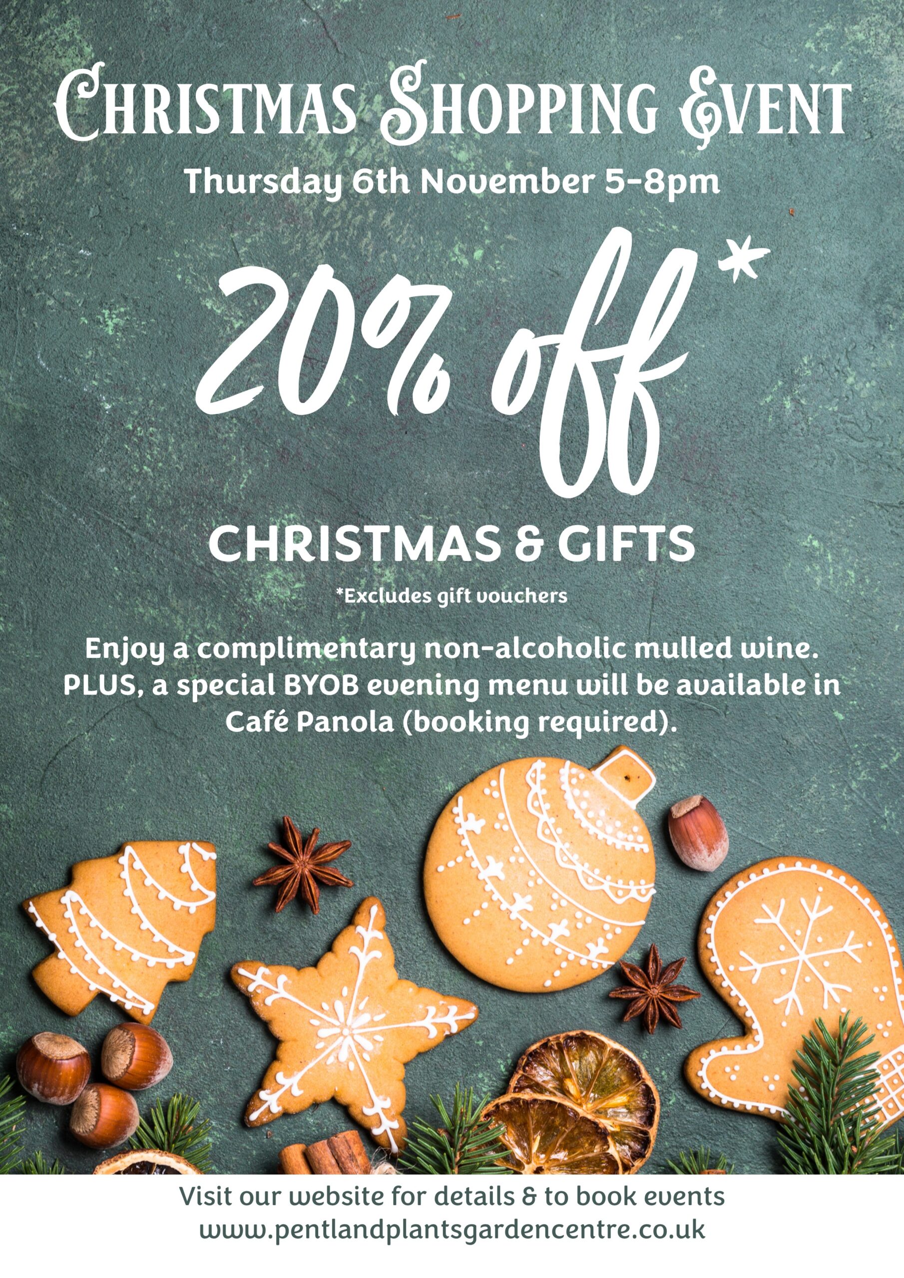 Join us for our annual Christmas Shopping Event where we will be serving complimentary non-alcoholic mulled wine and you can enjoy 20% off Christmas and gifts (gift vouchers excluded). We will also be hosting a special BYOB evening meal in Café Panola which you can register for separately.